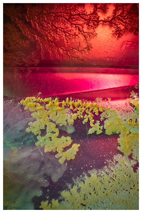 Basée sur les cultures réalisées à mon domicile, les prises de vue fluctuent selon la vie et les évolutions des phisarum polycephalum que je soumets à diverses nourritures dans des environnements conçus spécifiquement pour le projet.